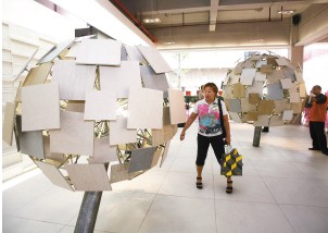 圖為中國陶瓷產(chǎn)業(yè)總部基地內(nèi)獨(dú)特設(shè)計(jì)的瓷磚潮流新品
