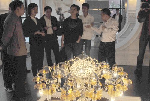應(yīng)該說,邱代倫的演說般的導(dǎo)游語匯,加上他潘長(zhǎng)江式的行為語言,起到了很好的效果。來自全國(guó)各大重點(diǎn)網(wǎng)絡(luò)的采編人員的目光始終隨 著他前行,看空間“倒置”的陶瓷建材展示屋,睇以牛為題材搞出的陶藝比賽獲獎(jiǎng)作品展,觀由一幢幢舊民居改成的世術(shù)創(chuàng)作室,覽有著厚重 歷史和嶺南風(fēng)風(fēng)韻的林家祠堂……