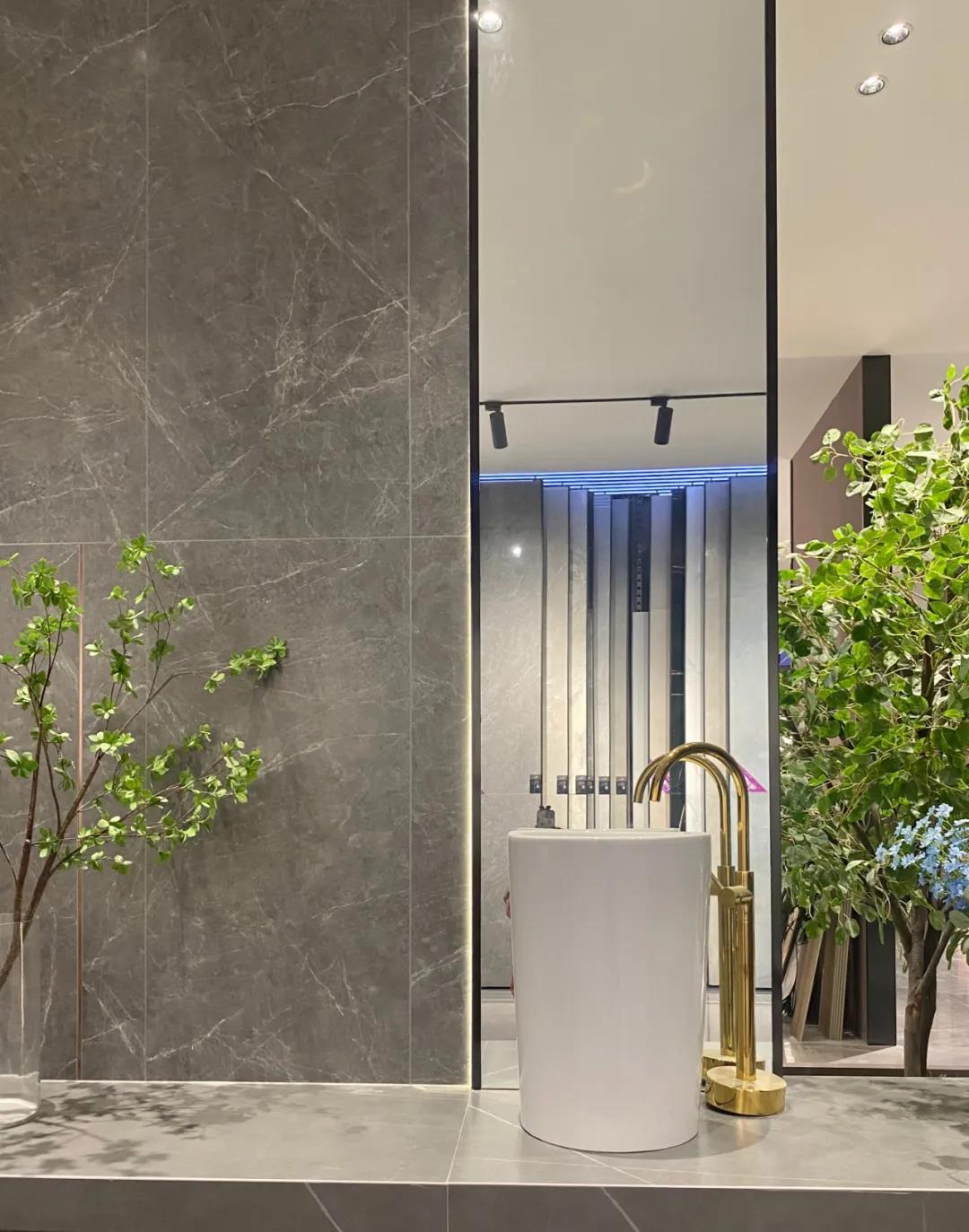 巖板更薄,僅為傳統瓷磚的1/3,巖板更輕,甚至不到傳統瓷磚1/3,傳統瓷磚平均重量為23-27kg/㎡, 而超薄巖板的平均重量僅為7kg/㎡,易于運輸、安裝。