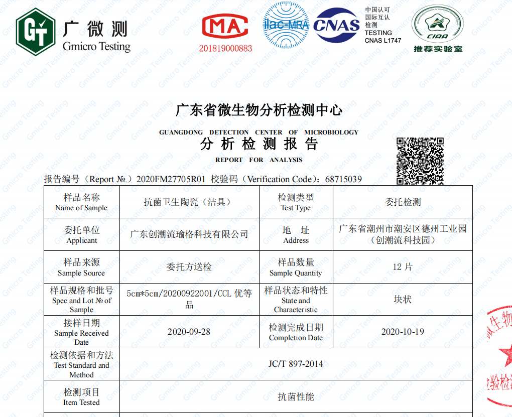 此外,創(chuàng)潮流聚焦抗菌衛(wèi)浴,打造行業(yè)專業(yè)化抗菌領(lǐng)導(dǎo)者形象,搶占健康衛(wèi)浴新賽道。抗菌坐便器在陶瓷釉料中添加復(fù)合納米抗菌材料,通過高溫?zé)埔约八拇呋δ埽行У囊种撇鐨⒓?xì)菌,從而達(dá)到抗菌易潔、除霉防臭的效果;抗菌衛(wèi)生陶瓷經(jīng)權(quán)威機(jī)構(gòu)檢測,對大腸桿菌、金黃色葡萄球菌抗菌率高達(dá)95%以上,并實(shí)現(xiàn)馬桶長效抗菌。2021年,創(chuàng)潮流抗菌產(chǎn)品榮獲中國廚衛(wèi)榜“抗菌衛(wèi)浴產(chǎn)品金獎”。