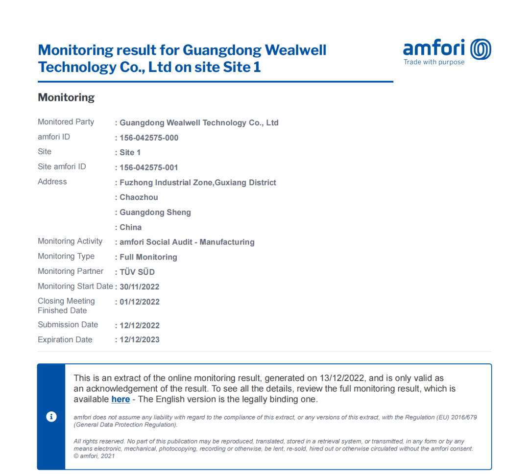 為開拓國際市場,進一步擴大貿易合作發展空間,廣東櫻井科技有限公司引入國際標準化管理體系,接受BSCI企業認證的審查,經過專業的文件資料審核、企業現場審核、員工訪談等一系列環節,于近日順利通過BSCI認證的審核。