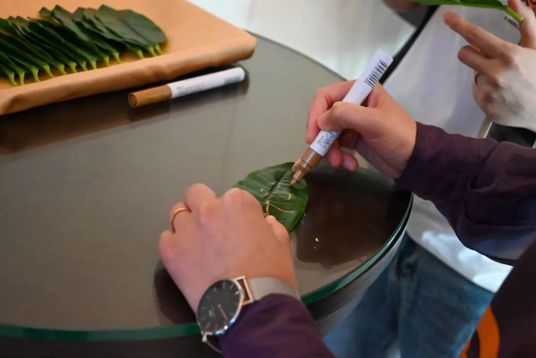 為了增加互動性,簡舍特別設(shè)計簽到環(huán)節(jié),讓每個人手上的葉子,去繁茂同一片“生命之林”,蘊含“簡舍之樹”枝繁葉茂的美好寓意。