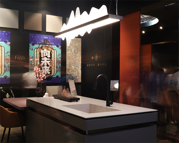 聚焦健康舒適生活,法薩石運籌發力廚衛全品類,第三代皮紋工藝結合空間美學,其中定制一體化島臺,優雅的線條、細膩的光澤、沉靜的配色,于觸感之上營造低調不失優雅的靜謐氛圍,賦予產品超凡的質感,打造更具有詩意的情感空間。