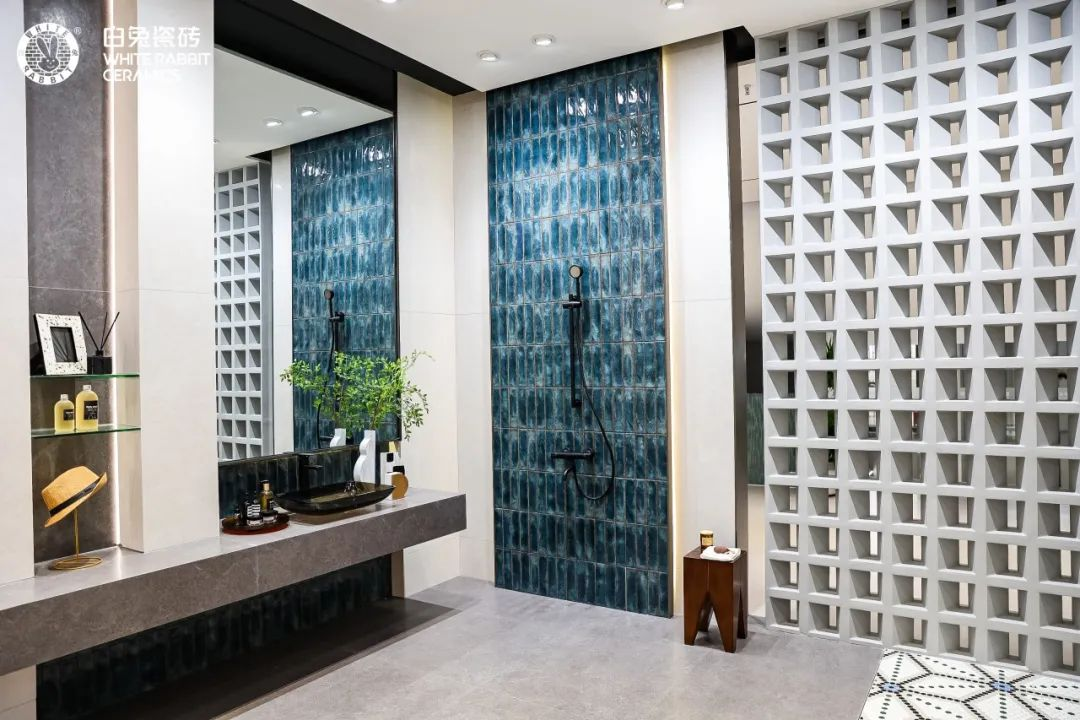 此次陶博會,白兔瓷磚佛山營銷中心展廳煥新升級,新展廳從布局、空間、產品、文化等方面多維創新,將三磚新品——精品墻地磚、藝術馬賽克、文化墅磚/外墻磚融入特定空間中,實現一個場景多種產品展示,構建沉浸式產品體驗。
