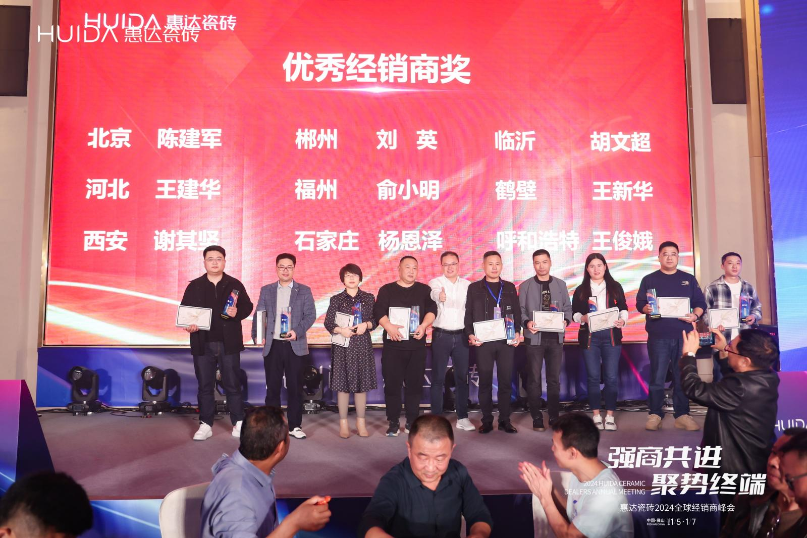 一段砥礪奮進的征程,離不開榜樣的力量;豐收的累累碩果,也離不開同行者的汗水和拼搏。本次峰會還舉辦了“惠達瓷磚2023年度頒獎盛典”,隆重表彰2023年度為惠達瓷磚發(fā)展做出重要貢獻的優(yōu)秀經(jīng)銷商代表,先后頒發(fā)了年度“卓越工程服務(wù)商”、“優(yōu)秀工程服務(wù)商”、“卓越經(jīng)銷商獎”、“優(yōu)秀經(jīng)銷商獎”、“優(yōu)秀專賣店獎”、“大灣區(qū)特別貢獻獎”等獎項。