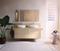 該系列的設(shè)計(jì)核心與靈魂色調(diào)——啞光陶土色,以傳統(tǒng)工藝為靈感,賦予陶瓷產(chǎn)品質(zhì)樸自然而溫暖優(yōu)雅的質(zhì)感,使其更具有手工般的真實(shí)觸感。Urquiola表示:“我們的目標(biāo)是利用陶土這種材料,創(chuàng)造出一種讓衛(wèi)浴用品更有層次的畫布。這是有意偏離純白或純黑極簡美學(xué)的嘗試?!边@也構(gòu)成了浴室家具的配色基礎(chǔ),大地色系的陶土色調(diào)以及以自然為靈感的色彩搭配,其中融入了白色、土棕色和啞光炭黑色的微妙變化,預(yù)示著浴室色彩運(yùn)用的全新開放性。