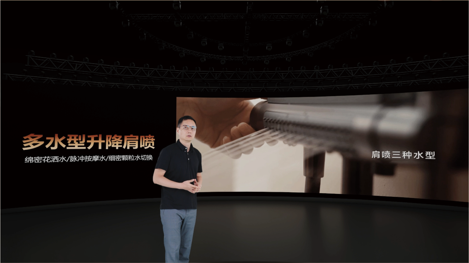集科技與美學于一身,E700系列花灑用設計掀起花灑顏值革命:流光呼吸燈隨水流溫柔明滅,星辰大置物平臺承托洗護瓶罐如星軌有序鋪展;更深研浴室療愈——浴前預排冷水免等待,五重水路釋放治愈力:頂噴+升降肩噴+手持花灑+背噴+下出水織就立體暢淋釋壓體驗,優雅構筑出科技美學淋浴系統新范式。