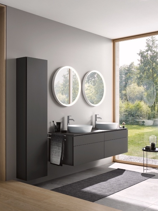 Christian Werner設計的杜拉維特Vitrium系列巧妙融合纖薄柜體與懸挑的臺上盆,打造獨立有序的洗漱空間,同時采用背光半透明玻璃作為浴室柜前面板,營造出輕盈通透的視覺效果,柔和的光影效果為浴室增添一抹靈動與浪漫。無論是清晨的第一縷陽光,還是夜晚的溫馨燈光,這一設計讓空間煥發出獨特的光彩,為日常生活注入溫暖與愛意。