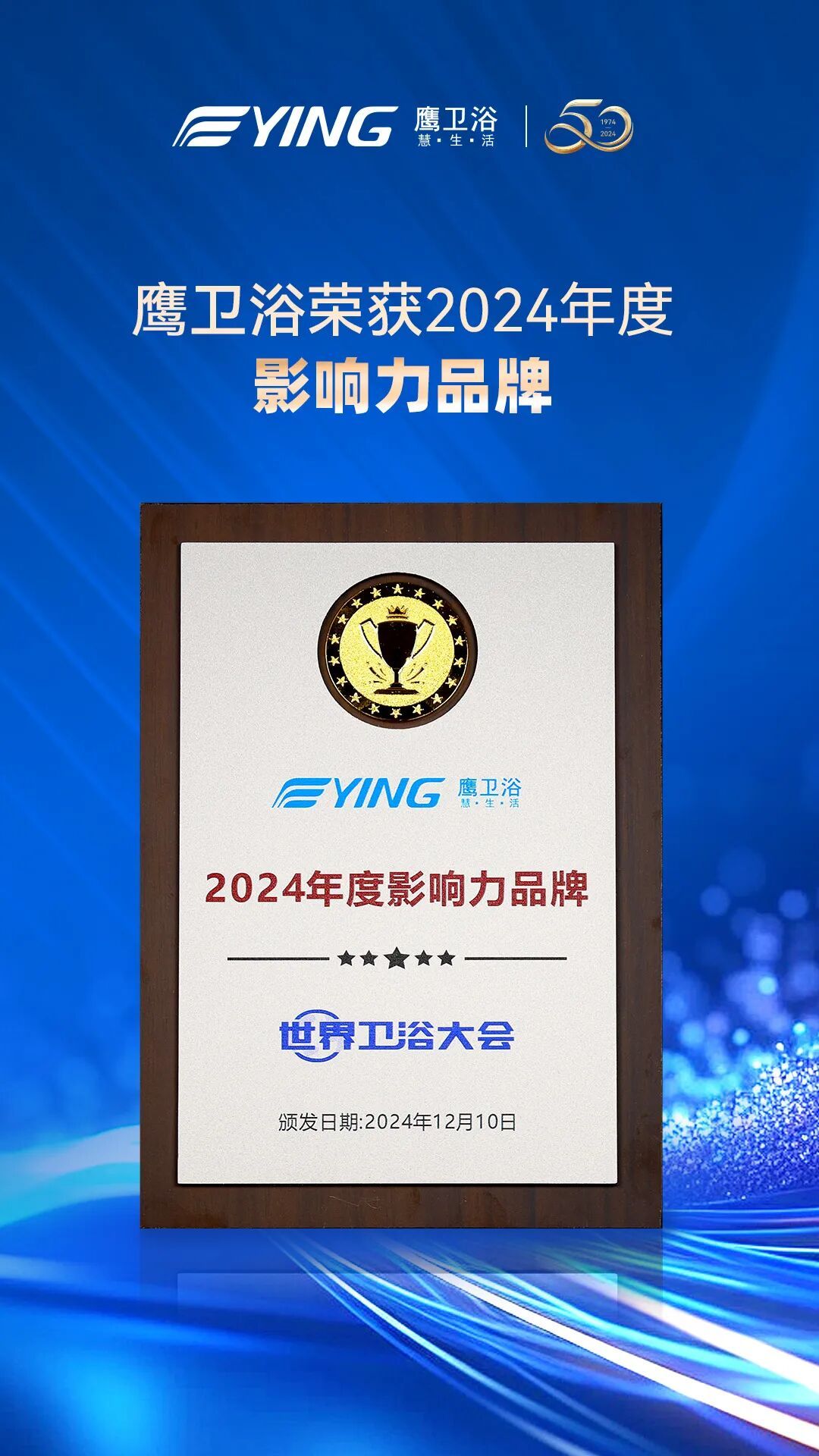 榮膺“2024年度影響力品牌”,是鷹衛(wèi)浴在品牌建設(shè)與市場拓展道路上取得的又一成就。2024年,鷹衛(wèi)浴迎來了50周年的發(fā)展里程碑,在品牌宣傳、終端形象等都取得了傲人的成績。